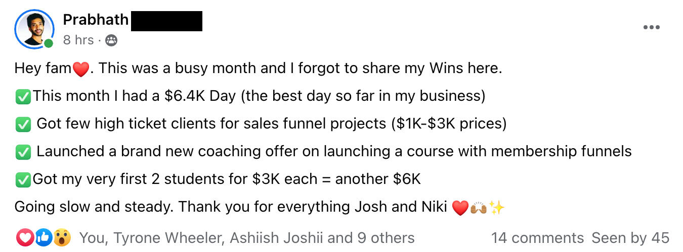 We've successfully used this unique system in...➢ Coaching, consulting & mentoring➢ Social media marketing➢ Business opportunities➢ Proffessional services➢ Networking Marketing➢ Business-to-customer➢ Business-to-business➢ Affiliate marketing➢ Agencies... and many more.If you want to see some feedback from clients, just tap here to get the gist of what I'm doing.If you run ads, create TikTok, write for a blog, or build communities, this constant fear strikes..."Will this ad creative work""Will people open this email?""Will I get any engagement and support on this piece of content..."I get it, I've been there but I managed to turn this problem around into a $1.5M+ business empire......and so can you.I developed this simple system for you to plug yourself into so you can start to:✅ INFLUENCE✅ GROW✅ HAVE FUN✅ MAKE MORE MONEYIf you want to unlock everything you've read on this page, hit the button below to grab the system.
