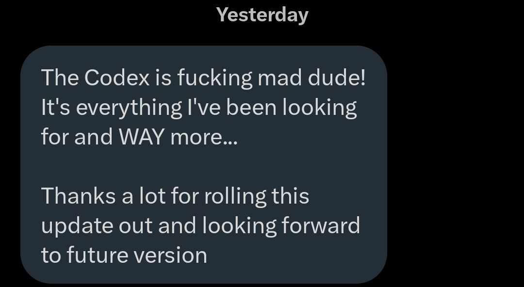 INSTEAD, YOU'LL GET:✅ A "Done For You" content system that even a monkey can operate (no tech experience required)✅ The procedure to turn ONE piece of content into dozens across multiple social media platforms✅ The social media archetypes that are growth and sales-driven (this helps you stay consistent and make more money)✅ The counter-intuitive methods to creating near infinite amounts of content✅ Get your content that stands out, and get read. The Codex will help you show your prospects the benefits of your brand, offer and business✅ The nearly unknown tools that will help you craft faster and better content that will make more money and grow your audience at incredible speedI've spent years building this, and MILLIONS of words have been written during this process.With the help of the Codex, you'll become a content machine across all platforms (including email) and turn unsuspecting people into hardcore fans.